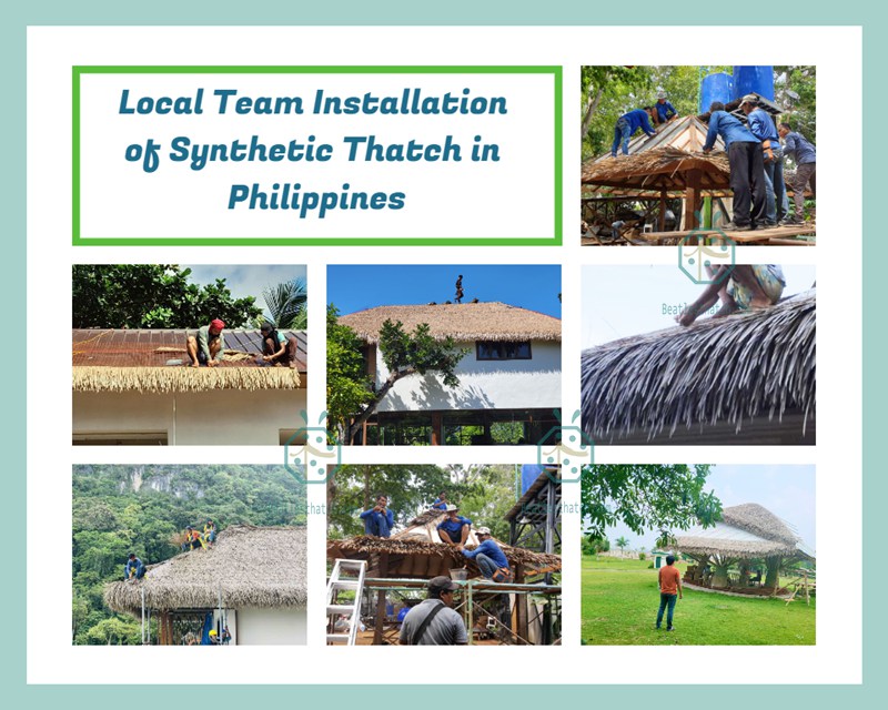 As synthetic thatch roof is much easier for installation than natural nipa or cogon roof, so, besides our local distributors could help you arrange the nipa/cogon thatch roof installation, you could look for your local construction companies for installation too. We would provide necessary assistance for the thatch installation. We have installation manual for your reference: