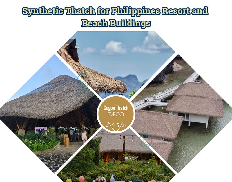 Synthetic thatch roof in the Philippines is widely used for beach resorts, island villas, pool bars, and tropical commercial projects. Engineered for tropical climates and typhoon-prone regions, our synthetic thatch roof systems provide superior fire resistance, weather protection, and a lifespan of up to 20 years — significantly longer than traditional nipa thatch or palm roof. BeatlesThatch supplies high-quality synthetic nipa thatch materials for projects across El Nido, Metro Manila, Quezon City, Laguna, Batangas City, Cebu, Palawan, Boracay, Davao, Cavite Province (Calabarzon), and other tropical destinations in the Philippines.