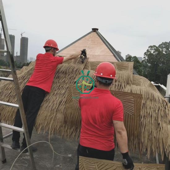 Fake thatch roof could be easily installed on various roof structures, such as plywood, corrugated steel panel, or just wooden rafter and purlin. Much easier than natural thatch roof covering.