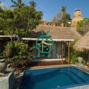 Tropical faux garden gazebo thatch roof tiles are supplied in Beatles. Long lifespan artificial alang alang thatch could be customized according to your beach bali hut, resort bungalow or BBQ restaurant designs.